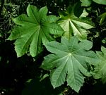 Monoecious, glabrous, annual or perennial, herb, shrub or even small tree. Stipules united to form a caducous sheath. Leaves alternate; petiole with glands at base and apex; lamina peltate, palmately-lobed, the lobes glandular-serrate. Inflorescences paniculate; male flowers in lower half, female in upper. Male flowers: pedicels jointed, with 2 bracteoles; calyx with 3-5 valvate lobes; petals and disk 0; stamens numerous; pistillode 0. Female flowers: pedicels elongating in fruit; sepals 5; petals and disk as for male; ovary 3-locular; ovules 1 per loculus; styles 3, dark red. Fruit 3-lobed, smooth or echinate with accrescent spines, dehiscing into three 2-valved cocci leaving a prominent, persistent columella. Seeds smooth, mottled. Derivation of name: from Latin ricinus meaning bug or tick, referring to the seeds Worldwide: 1 species in East and Northeast Africa and Middle East, naturalised throughout the tropics Malawi: 2 cultivated taxa. |
