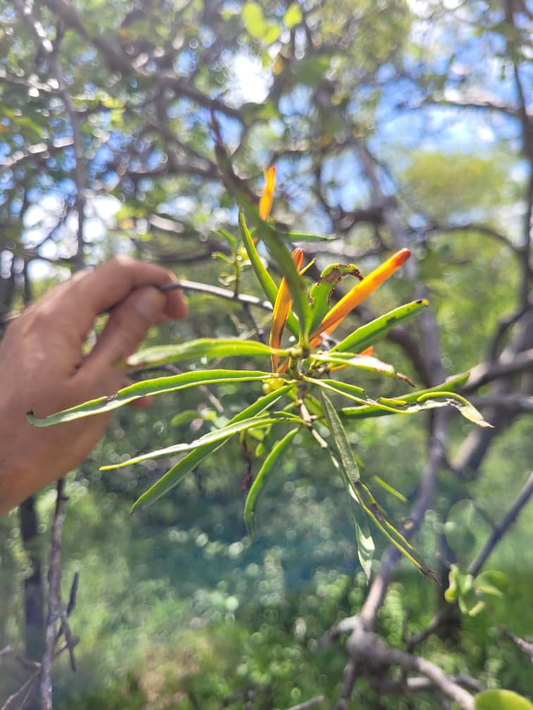 | Notes: | Leaves narrow, plants in flower, tube yellow with orange tips. |