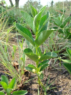 Notes: Herb +-30cm tall, single yellow-green stem, whirls of three leaves, largest towards top, leaves midrib yellow, blades rounded, curved upwards, pale green below, tips upwards, flowers cream yellow, short stalked, tucked away at axils between stam and leaf. Threats: Unusual