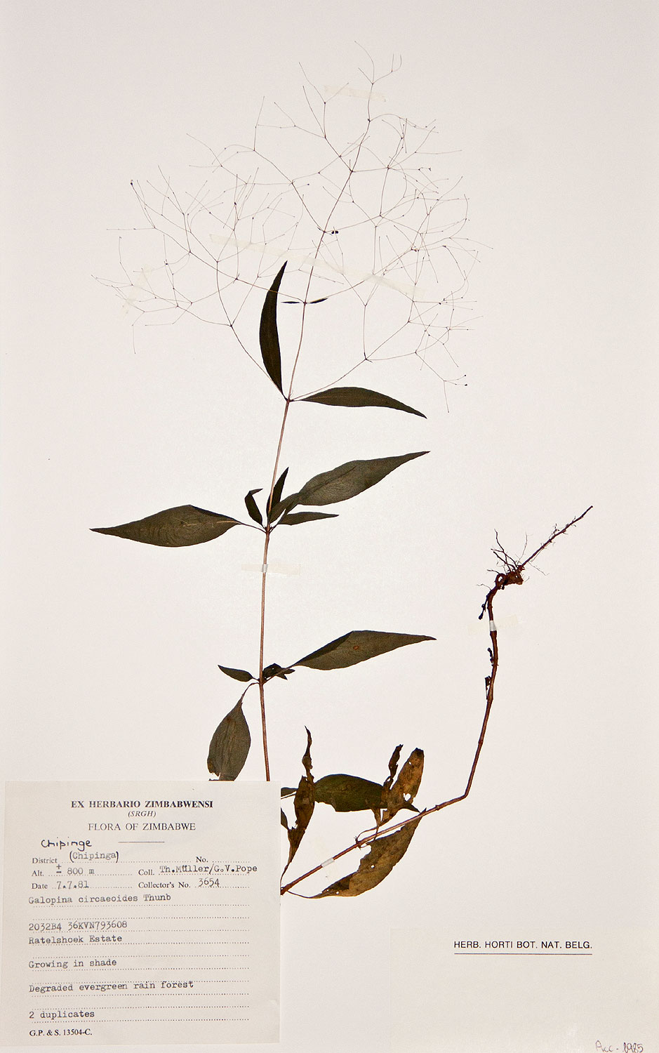 | Collector(s): | TM Müller GV Pope 3654 |