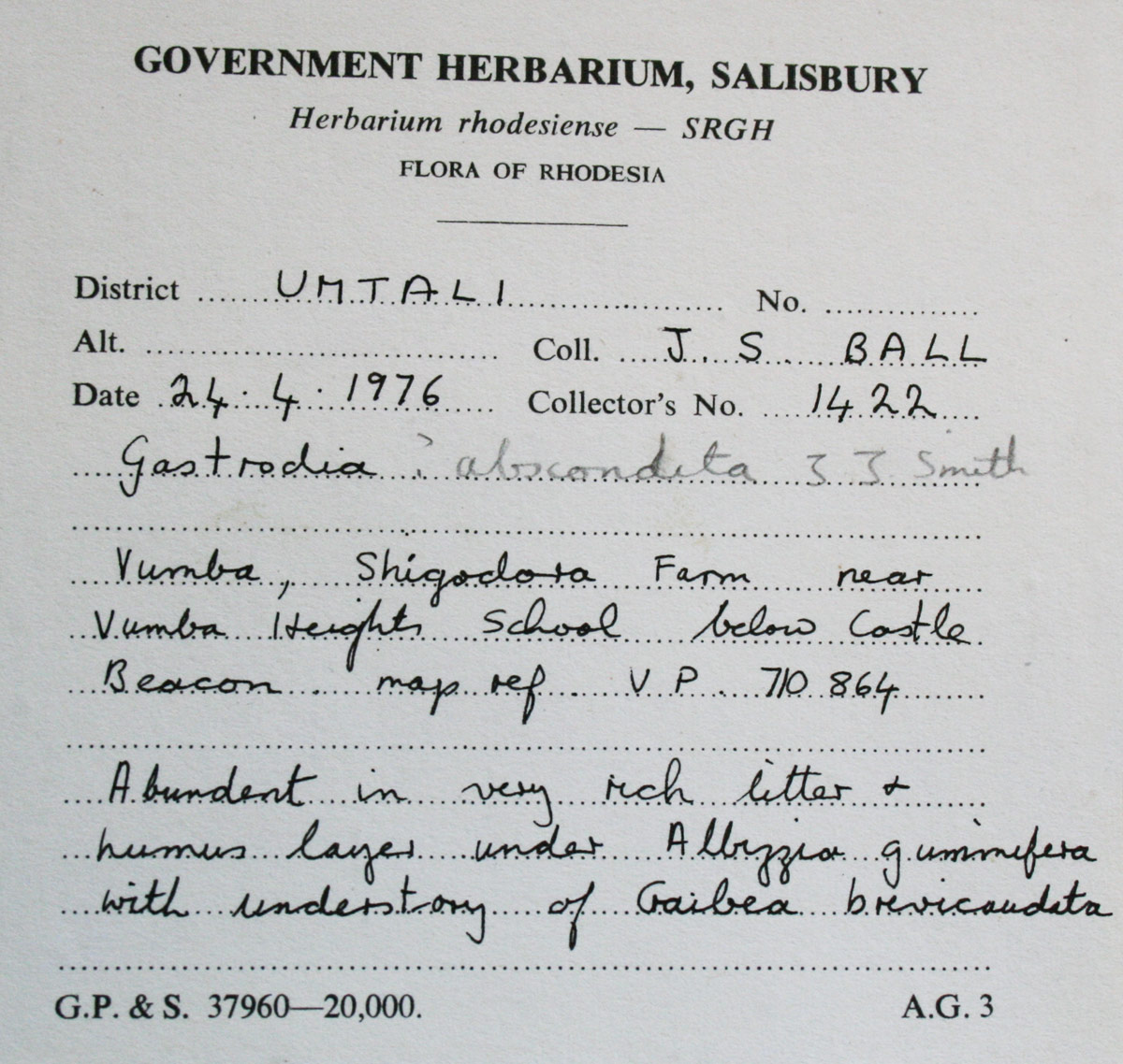 | Habitat: | In very rich litter and humus layer under Albizia gummifera with understorey of Craibia brevicaudata. |