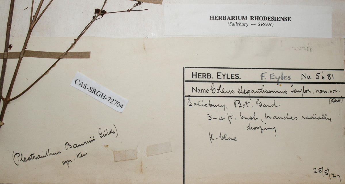 | Habitat: | Botanic Garden, Salisbury ( now Harare). |