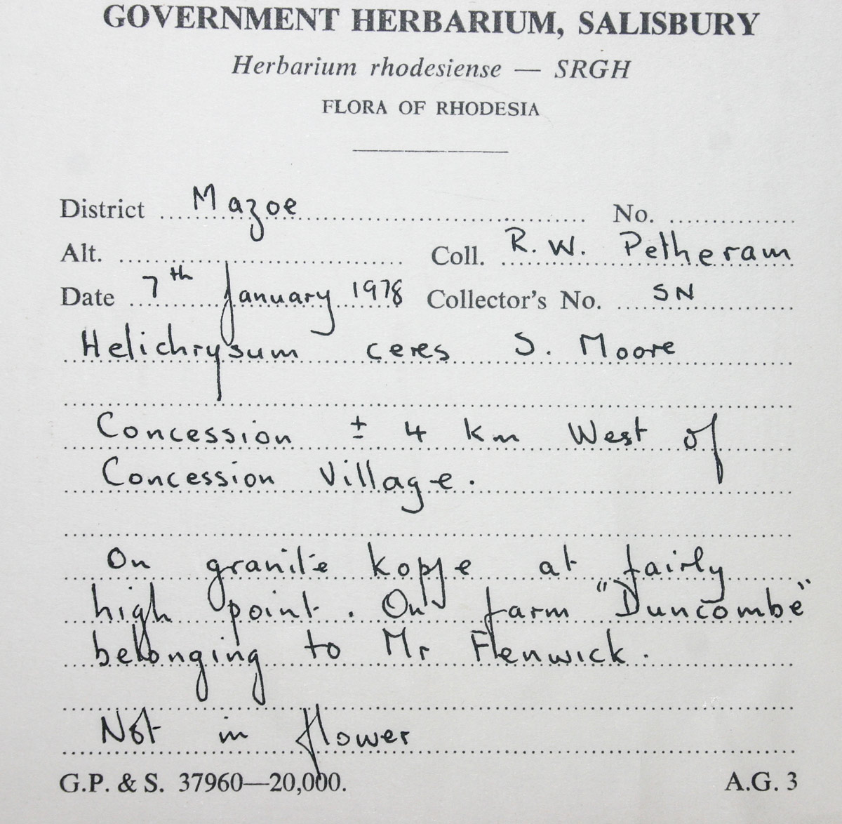 | Notes: | Not in flower. Cited in Wild 1980: 42, Draft Revision Helichrysum for Flora Zambesiaca. |