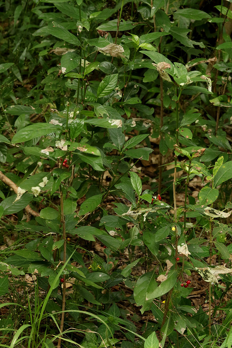 | Notes: | Small shrub in fruit; ripe capsules red. |