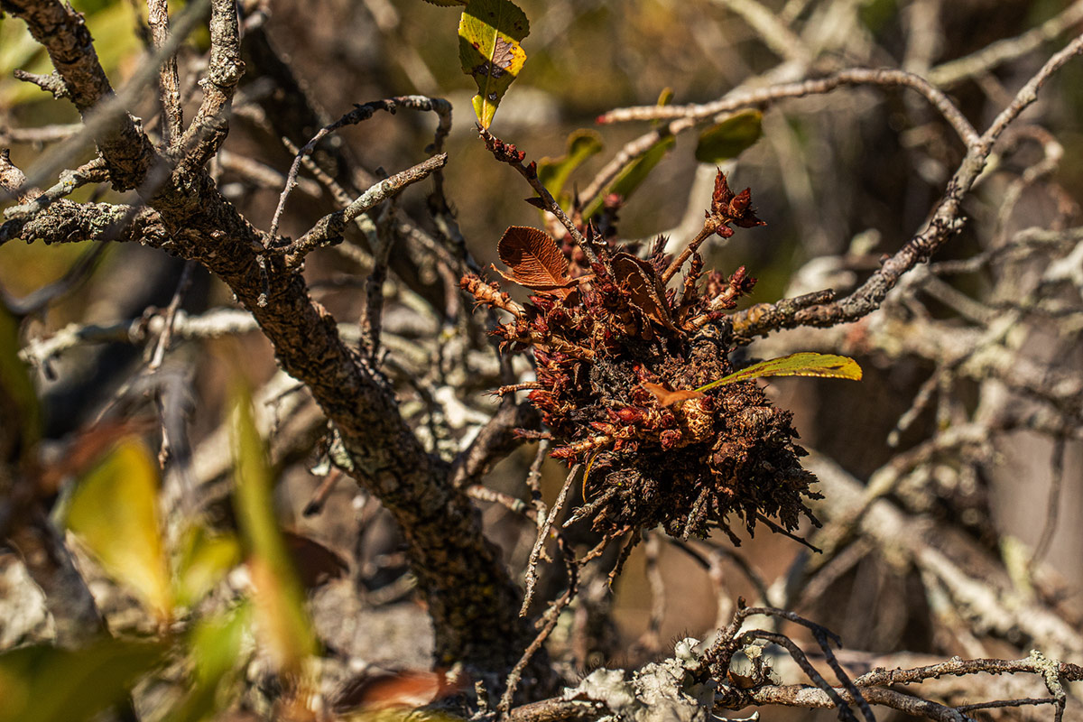 | Notes: | Old inflorescences distinctly galled. |