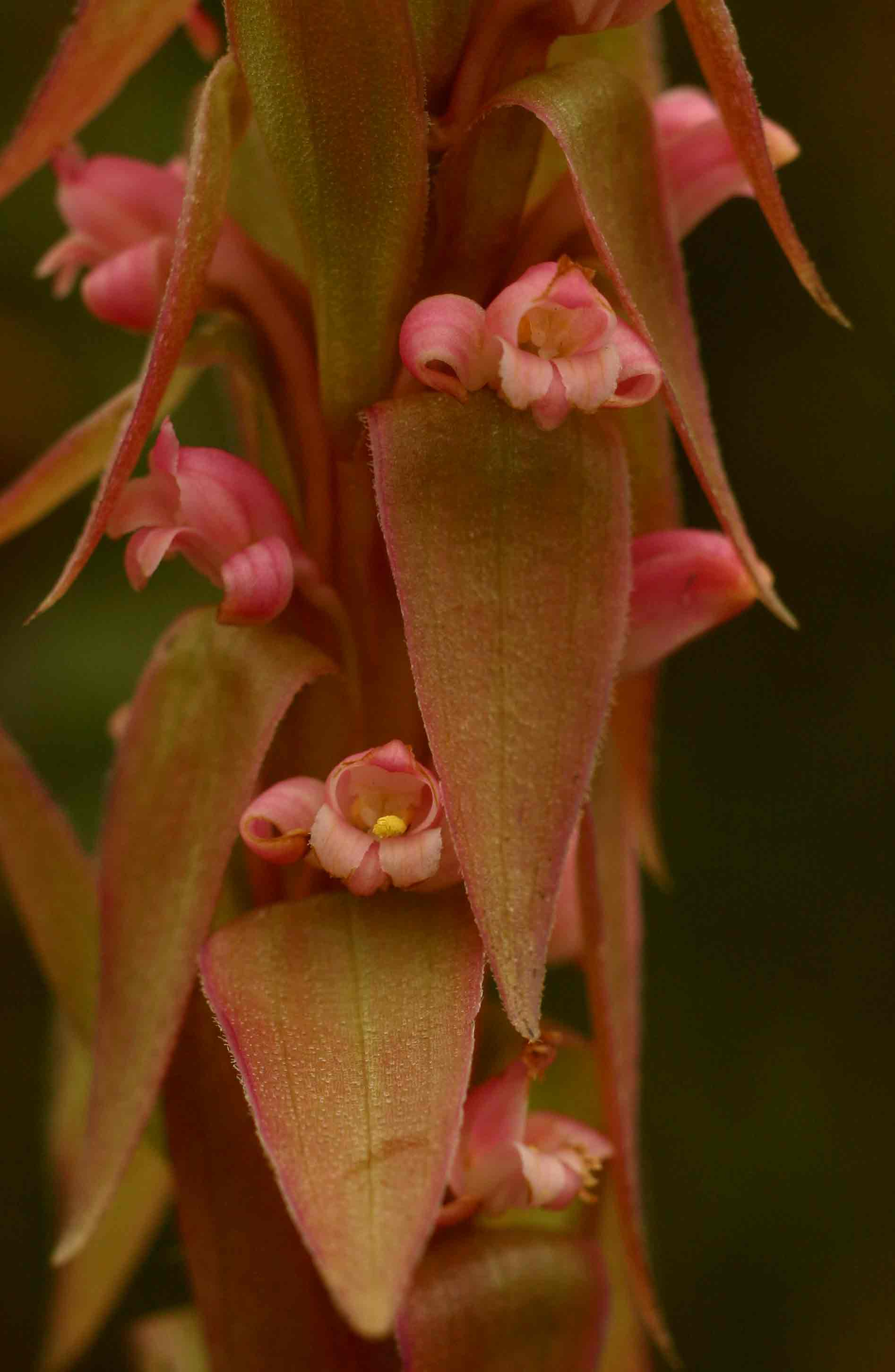Notes: Stout pink orchid; bracts very large; inflorescence separate from leaves.