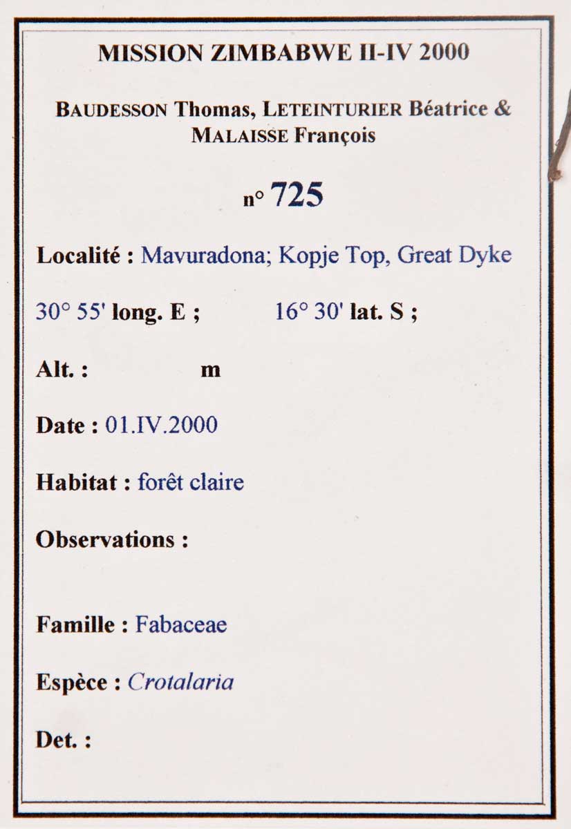 | Collector(s): | T Baudesson B Leteinturier F Malaisse 725 |
