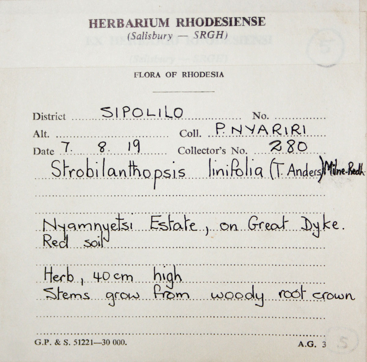 | Collector(s): | P Nyariri 280 |