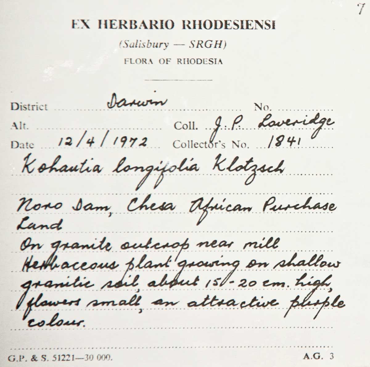 | Collector(s): | JP Loveridge 1841 |