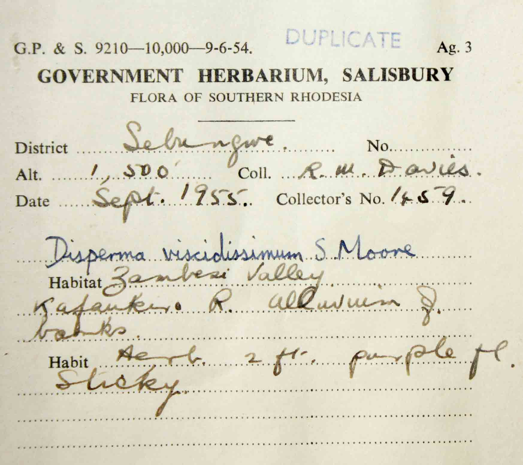 | Collector(s): | RM Davies 1459 |