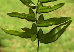 Rhizome short, creeping, c.5 mm in diameter; rhizome scales lanceolate, brown to rust-coloured with dark brown central stripe, apex slowly tapering to a point, margin entire, up to 3 mm long. Fronds tufted, erect to arching, deep green, herbaceous to thinly coracious. Stipe dark brown to blackish, shining, up to 44 cm long, about as long as the lamina, grooved in the upper part, practically hairless but set with hairlike scales towards the base. Lamina varying in size, shape and dissection; up to 50 cm × 24 cm, lanceolate to ovate to broadly triangular in outline, mostly 2-pinnate to 3-pinnate, rarely more divided; lower pinnae the largest and occasionally somewhat basiscopically developed. Pinnules variable, oblong-lanceolate, apex rounded to pointed, base cordate to hastate, margin entire to minutely crenate, venation free, distinct, both surfaces hairless or slightly hairy on the veins. Rhachis and secondary rhachis dark brown to black, shining, broadly grooved, hairless or with hairlike scales, always pubescent in the axils. Sori marginal; indusium continuous, subentire. |