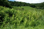 Cyclosorus interruptus look for: 1 pair of veins meeting well below and 1 pair meeting at the sinus, zigzag soral pattern, leathery pinnae that are incised a third to halfway to the costa. May also be confused with C. striatus which has more veins per lobe (15-24) and pinnae that are incised more than half way to the costa. |