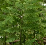Rhizome widely creeping, c. 2 mm in diamater; rhizome scales subcircular to broadly ovate, brown, up to 1.5 mm long, margins entire. Stipe up to 18 cm, articulated near the base, pale brown, glabrous at maturity. Fronds spaced apart, erect to arching. Lamina up to 33 × 12 cm, oblong-lanceolate in outline, deeply 2-pinnatifid with 13-17 alternate pairs of pinnae and a pinnatifid terminal segment. Pinnae up to 7.5 × 1.5 mm, subsessile to shortly petiolate, articulated to the rhachis, oblong-lanceolate in outline, apex tapering into a long drawn-out point, broadest at base, basal 2 pairs of pinnae slightly reduced; ultimate lobes oblong with rounded apices, glabrous but with sparse white hairs along the veins, costules and costae below, white dots on the upper surface absent. Sori circular, usually solitary in each lobe, but sometimes up to 6 per lobe; indusium c.1 mm in diameter. |