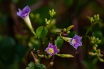 Stems reddish, minutely muricate, trailing, several meters long. Leaf lamina ovate; base cordate; apex obtuse or acuminate; petiole 5-24 cm, sometimes minutely muricate. Inflorescence of several-flowered cymes; peduncle relatively long, 5-25 cm, pubescent; pedicels 0.7-1.5 cm, enlarged at the apex, often reflexed. Sepals 5 mm long, lanceolate-oblong, mucronate. Corolla funnel-shaped, blue with purplish tinge, 3.5 - 4.5 cm long. Capsule glabrous. Seeds trigonous, glabrous or shortly pubescent. |