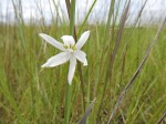 Herb, up to 85 cm tall, growing from a short, horizontal, regularly constricted rhizome with fibrous remains of old leaf bases; roots slender and wiry with distant tubers; leaves 4 – 6 per plant in 2 rows, broadly linear, narrowed and sheathing below, attenuate above, 7 – 85 x 0.5 – 4.5 cm, glabrous with midribs prominent, leaf bases without reddish-brown stripes or spots; peduncle flat and narrowly winged above, up to 40 cm long, glabrous; inflorescence unbranched, up to 16 cm long, flowers sparsely arranged; floral bracts to 12 mm long, lanceolate; pedicles articulated below middle, 1 – 7 per node, c. 14 mm long in fruit; perianth whitish to pinkish; tepals 8-17 mm long, (3)5-7 veined; stamens slightly shorter than tepals, in two groups usually with 4 in upper and 2 in lower; filaments glabrous, shorter or about as long as anthers; style declinate, slightly exserted above stamen; capsule obovoid to shallow deltoid, transversely ridged, covered in remains of dry perianth; seeds irregularly folded, c. 1 mm across. |