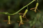 Herb 12–80 cm high, completely hairless, growing from a small ovoid bulb ovoid, 1–3 cm wide, occasionally producing bulbils. Leaves 4–11, linear to linear-lanceolate, up to 50 cm long and 9 mm wide. Peduncle terete, often curved above. Inflorescence laxly flowered and subsecund, overtopping the leaves. Pedicels lengthening in fruit, up to 14 mm long. Flowers green, brownish, yellowish or whitish-green; outer and inner segments equal, linear, c.13 mm long, outer ones recurved from below middle, inner ones broader, slightly spreading. Anthers c.5 mm long; style about as long as ovary. Capsule 3-angled, 5–13 mm long. |