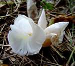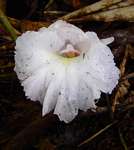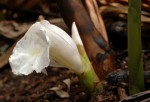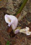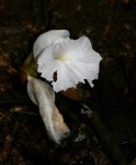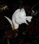 Leafy shoots arising from extensive rhizomes. Inflorescences 2-3-flowered, also arising from the rhizome. Corolla white. Labellum white with yellow basal patch. |