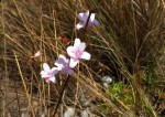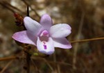 Erect epiphytic, lithophytic or terrestrial herb, with clustered conical pseudobulbs 1.5–5 cm long, 5–10-leaved. Leaves distichous, linear grass-like, 8–20 cm long, deciduous and often absent at flowering time. Flowers borne on old pseudobulbs when plants are leafless; inflorescence up to 80 cm long but usually much less, with 1 to several short well-spaced branches well spaced out on the rhachis, each several-flowered. Flowers showy, opening wide, shell-pink to mauve-pink, sometimes almost white, sometimes with red or lilac spots on the lip. Dorsal sepal oblong, 5.7–12 mm long; lateral sepals obliquely oblong-lanceolate, 7–11.5 cm long. Petals oblong to obovate, 5.8–11.6 mm long. Lip ovate-oblong, entire, slightly recurved, 7–11 mm long, with a yellow, slightly pubescent, longitudinal callus in the basal third. Capsule cylindric, 4–4.5 cm long and 3–4 mm wide. |