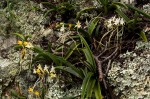 Robust epiphytic or lithophytic (see photos) herb. Leaves linear, forming a fan on a very short stem. Up to four inflorescences arise from the lower leaf axils, each with up to 15 flowers. The pure white flowers turn apricot-orange with age (see photos). They are about 13 mm across with a long cream coloured spur, up to 8 cm. |