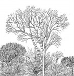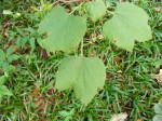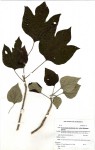 Slender, deciduous tree. Bark smooth, grey, often bleaching to a silvery-white on the sunny side. Leaves spirally arranged, crowded near the ends of branches, up to c. 15 × 12 cm, more or less deeply 3-lobed, dark green above, paler greyish below, finely velvety on both surfaces, markedly 3-veined from the base; veins yellowish; petiole up to 9 cm long. Flowers in compact heads, yellowish-green, with an unpleasant smell. Fruit a woody nut with 2 long thin wings, aiding wind dispersal. |