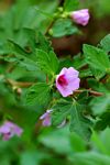Erect perennial herb, up to 1 m. Stems with stellate hairs. Leaves oblong to almost circular, variously 3-5-lobed; margin serrate. Flowers solitary in leaf axils, deep pink. Fruit spherical, about 1cm in diameter. |
