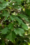 Multi-stemmed shrub or small tree. Bark smooth, grey to brown; branchlets densely hairy. Leaves broadly ovate, up to 13 × 10 cm, not lobed or only very shallowly so, 5-7-veined from the base, very roughly hairy above, softly hairy below; margin scalloped or toothed. Flowers borne in profusion in axillary clusters, white, c. 1.3 cm in diameter, appearing with the new leaves. Fruit a round capsule, c. 5 mm in diameter, covered in whitish silky hairs, surrounded by the dried papery petals. |