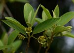 Small to medium-sized tree. Leaves spirally arranged, oblong-elliptic, dark green above, much paler, bluish-green or yellow-green beneath; margin entire or obscurely toothed. Flowers pale yellow to greenish, axillary, unisexual, sexes on different trees. Female flowers solitary; male flowers in sparsely branched heads. Fruit a spherical capsule, greyish yellow-green, rough and tuberculate on the outside, splitting into 5 valves, revealing black seeds in a sticky orange-red coating. |