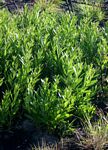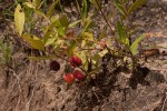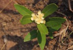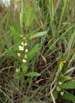 Suffrutex, growing from a creeping rhizome. Stems usually unbranched except where not burnt back by grass fires. Leaves mostly in 3's or 4's, sometimes (sub)opposite, linear to narrowly elliptic. Flowers solitary in the (lower) leaf axils, creamy-white with brownish stamens.Fruits spherical, c. 1.5 cm in diameter, purple-black when ripe. |