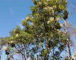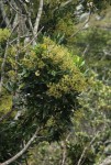 Medium-sized evergreen tree. Leaves crowded near the ends of branches, digitately compound with 3-5 oblong-elliptic leaflets on long, slender petioles. Flowers very small, greenish-cream in large umbel-like terminal inflorescences. Fruit in loose clusters, spherical, dark red when ripe. |