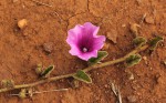 Perennial herb with persistently yellow-brown hairy stems, up to 2 m long, growing from a woody rootstock. Leaves narrowly oblong, ovate or elliptic-ovate, 3-11 cm long, more or less cordate at the base, pubescent (densely so in this variety); petiole hairy, 1-4.5 cm long. Flowers axillary, solitary or few in small head; peduncles 1-7.5 cm long, hairy; bracts (in this variety) ovate, up to 19 mm long. Sepals (in this variety) ovate, up to 16 mm long. Corolla funnel-shaped, mauve to purple-pink, 2.5-5 cm long, more or less hairy. Capsule globose, hairless. |