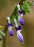 Scrambling herb. Stems 4-angled, with spreading hairs, particularly when young. Leaves broadly ovate to almost round, velvety above, less so below; margins more or less regularly crenate-dentate, sometimes with smaller teeth on the crenations. Inflorescences terminal, branched. Flowers deep violet-blue, white in the throat and the basal part of the upper lip.