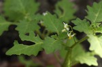 Erect or spreading annual herb, 20-100 cm high.Branches more or less angular or narrowly winged wit spaced soft teeth or prickle-like hairs. Leaves elliptic to ovate, up to 11 cm long, more or less deeply lobed, decurrent into a winged petiole, pubescent on both surfaces. Flowers in 3-7-flowered umbelliform inflorescences, white to creamy-yellow, often with a purplish stripe down the centre of the lobes. Fruit on recurved or strongly reflexed pedicels, more or less depressed globose, 6-8 mm in diameter, purple-black when ripe, poisonous.