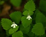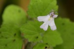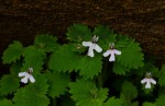 Prostrate or creeping annual herb. Stems much branched, up to 25 cm long, with soft spreading hairs. Leaves broadly ovate, triangular or almost round with long hairs on both surfaces; margin coarsely toothed. Flowers solitary, axillary, white to pale mauve with purple and yellow spots in the throat; corolla with a curved spur c. 6 mm long; upper lip small 2-lobed; lower lip large with 3 spreading lobes, mid-lobe largest. |