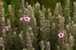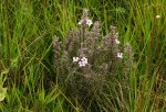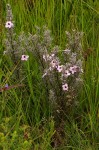 Erect robust perennial or undershrub to 1 m, pubescent to tomentose. Leaves 15-40 mm, opposite to subwhorled, simple to 3-fid or 5-fid with segments 1-1.5 mm wide; margin thickened. Inflorescence 5-20 mm, spike-like, simple or much-branched, relatively lax with the axis visible between the whorls. Flowers pink, mauve to purple. Bracteoles narrowly linear. Calyx 6-11 × c. 4-5 mm; lobes 3-9.5 mm, calyx not apparently inflated or enlarged, densely tomentose on the outside. Corolla 15-22 mm in diameter. Capsule glabrous, spherical to broadly ovoid. |