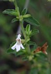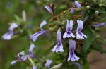 Semi-erect, somewhat scrambling, perennial subshrub, up to 50 cm tall, woody at the base. Leaves up to 6 × 2.5 cm, usually smaller, elliptic, ovate or obovate, more or less densely hairy. Flowers in sessile, axillary 3-12-flowered clusters, surrounded by elliptic to obovate leaf-like bracts, up to 1.5 cm long. Corolla extremely variable in colour, white to cream, pale to deep mauve, purple-blue, pale pinkish-white or rarely yellow, all colour forms sometimes with darker purple markings in the throat, 2-lipped; lower lip 3-lobed, upper lip less deeply 2-lobed. Stamens 4, only 2 protruding beyond the corolla mouth. Calyx with 5 narrow lobes, often with stalked, sticky glands. Capsule 10-16 mm long. |