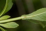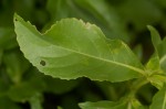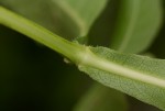 Erect or rarely decumbent, shrubby perennial herb, up to c. 1.2m tall. Stem 4-angled, aromatic when crushed, more or less densely covered with sticky glands and non-glandular hairs. Leaves opposite, elliptic to somewhat obovate, 3 - 20 cm long, hairless or with scattered glossy hairs on the veins; base decurrent; margin almost entire to toothed. Leaves often immature when flowering. Flowers in 1-3-flowered clusters in the upper axils, together often forming racemes or panicles with leaf-like bracts near the base of the inflorescence. Calyx with glandular and non-glandular hairs. Corolla white to mauve-purple with darker markings on the lower lip and a yellow to orange palate with stiff hairs on it. Fruit an obovoid capsule, 7-11 mm long, hairless or with scattered glands near the apex. |