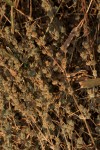 Erect or decumbent annual herb with opposite and decussate, widely spreading branches. Leaves often absent at flowering time; lamina 1.5-7 cm, ovate or elliptic. Inflorescences axillary, consisting of 2-3 umbels of 3-5 cymules per axil, developing at the lowermost stem nodes, becoming compound and forming dense axillary fascicles. Cymule bracts with length to width ratio 1.2-1.5:1; larger bract 5-8.5 mm long. Corolla 4-6 mm long, pink to purple, often found in bud only and then probably cleistogamous. Seeds with minute hooked tubercles. |