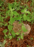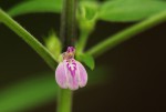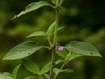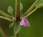 More or less erect annual herb, sometimes rooting at the nodes. Leaves opposite, narrowly lanceolate to ovate, 3.5 - 9.5 cm long, usually with at least some hairs, particularly on the veins. Petiole up to 3 cm long. Flowers in axillary clusters. Bracts and calyx with long woolly hairs. Corolla 5-7 mm long, pale to deep mauve or violet; base of the lower lip often white with darker mauve lines or spots. |