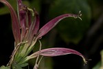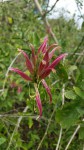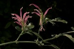 Small erect or scrambling shrub, 1-3 m tall. Young branches, 4-angled, grooved, green. Leaves opposite, 3-10 cm long, ovate to elliptic, light green above, bluish below and shortly hairy below when young; petiole 0.5-3 cm long; margin entire. Flowers in spike-like inflorescences on very short spur-branchlets. Corolla, red, dull red, dark red to purplish-red, rarely yellow, 4.5-5.5 cm long, glandular hairy, tubular, 2-lipped; tube shorter than the lobes. |