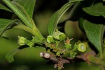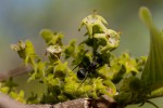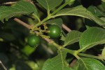 Small deciduous tree. Young branches and leaves velvety hairy. Flowers in branched, densely hairy inflorescences, greenish-yellow creamy-white, appearing before the leaves are fully developed. Fruits in pairs along the branches, held below the leaves, round, up to 45 mm, green to yellowish brown when ripe. The fruits are edible. |