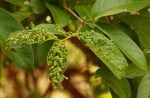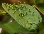 Superficially similar to Vangueriopsis lanciflora when in leaf. Subsp. rotundata is distinguished by more extensively branched inflorescences, fully developed leaves at the time of flowering and more pointed corolla lobes. Leaves of this species are often infested with distinctly stalked galls caused by the gall mite Acalitus mallyi in the family Eriophyidae. |