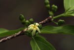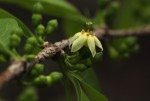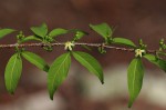 Mostly deciduous small tree or shrub, sometimes scrambling; branches slender, often with lenticels. Leaves opposite, oblong-elliptic to ovate or lanceolate, 2-11 cm long, hairless or sparsely to fairly densely appressed hairy, particularly on the midrib; petiole 2-7 mm long; stipules triangular at the base with long slender tip 6-8 mm long. Inflorescences axillary, umbel-like, 2-8-flowered, often together with the young leaves. Flowers, creamy-yellow or greenish-white; tube 2.5-4 mm long with a ring of deflexed hairs on the inside; corolla lobes 1.8-3 mm long, triangular or oblong. Fruit subglobose, 6-9 mm in diameter, black. |