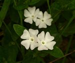 Perennial herb, growing from a fleshy, creeping rootstock. Stems erect, ascending, trailing or climbing, up to 50 cm long, more or less densely hairy. Leaves opposite, ovate, 3-10 cm long, more or less densely hairy on both surfaces, more so on the veins below, somewhat cordate at the base, rarely with 2 small basal lobes; margin entire or irregularly crenate-dentate; petiole 4-25 mm long. Flowers solitary or in opposite pairs in the leaf axils. Corolla pure white to very pale mauve. Capsule 6-9 mm long with a beak, 8-12 mm long. |