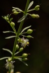 Erect, much-branched, shrubby perennial herb, up to c. 60 cm tall; stems and branches angled or ribbed. Leaves usually in whorls of 3 or sometimes opposite, narrowly oblanceolate to elliptic-lanceolate, 1.2-5 cm long, hairless but densely punctate beneath; margin crenate to sometimes deeply serrate in the upper half. Flowers solitary or sometimes paired in the axils of leaf-like bracts, together forming many-flowered, raceme-like inflorescences; pedicels up to 7 mm long. Calyx 4-lobed, 1.5-2.5 mm long. Corolla 2.5-3.5 mm long, white to pale pinkish-mauve, with long white hairs in the throat. Fruit a capsule, 2-3.5 mm long, pale brown when ripe. |