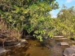 Hairless shrub or occasionally a small tree. Branches arching, often overhanging water. Leaves elliptic-oblong, 12-26 cm long, leathery; margin more or less shallowly crenate; petiole up to 1.2 cm long. inflorescence terminal, laxly branched, up to c. 25 cm long and 15 cm wide. Flowers 5-merous, creamy-white, in dense clusters along the inflorescence branches; sepals 1.2 mm long, narrowly triangular, finely velvety; petals c. 2 × 1.3 mm, spathulate or oblong-ovate, densely velvety. Fruit c. 7 mm in diameter, with petals persisting, somewhat enlarged. |