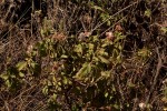 Shrub or woody herb up to c. 3 m tall, with wrinkled blackish or purplish-black woody stems. Leaves ovate, ovate-lanceolate or ovate-oblong, 6–21 cm long, acute to, appressed rusty hairy above and on the characteristic reticulate venation beneath; petiole 0–1.5 cm long, rusty velvety; stipules large, with c. 6–10 linear-lanceolate brown hairy setae 0.2–1.5 cm long from a variable base 3–8 long and wide; these bases connate and forming persistent cups at the nodes on old stems. Inflorescences branched, 2.5–15 cm wide; peduncles up to 1.5 cm long, velvety pubescent. Calyx tube hairy, 1.5–3 mm long; lobes linear, subequal, 0.3–1.2 cm, hairy outside, more or less equalling the length of the corolla tube. Corolla musky scented, white, often tinged pink, or entirely pinkish, hairless or pubescent; tube 0.5–1.4 cm long; lobes 3–7 mm long, the tips thickened and inflexed. Fruit 4–6 mm long and wide, the persistent calyx lobes often reflexed. |
