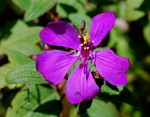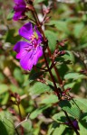 Much-branched shrub, 1.5-3 m high. Branches bluntly 4-angled, often purplish and bristly hairy near the apex. Leaves concentrated along the apical part of the branches, opposite, ovate to ovate-lanceolate, 5.5-14 cm long, 5-7-veined, dark green to purplish above and rough, bristly hairy above, much paler yellowish-green and much more sparsely hairy beneath; margin minutely denticulate-ciliate; petiole up to 2.5 cm long. Inflorescences in terminal, pyramidal branched heads up to 24 cm long. Flowers 5-merous,deep-violet to blackish-purple. |