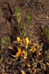 Erect shrubby herb, 6–45 cm tall, with many stems from a woody rootstock, flowering after burns. Leaves erect, pressed to the stem, 2–4-foliolate; leaflets obovate to oblanceolate-oblong, 4–13 mm long, somewhat falcate, rather thick, hairless, 3–6-veined from the base; petiole and rhachis together mostly 2–4 mm long, with a line of hairs beneath; stipules obovate-oblong or oblong-elliptic, leaf-like, 6-18, obliquely appendaged at the base on one side, persistent. Inflorescences axillary, several-flowered; peduncle 1–1.5 cm long, sparsely pubescent or hairless; pedicels mostly 2–4 mm long; bracts 2-lobed, persistent, some 3-partite, corresponding to 2 stipules and a reduced leaf. Calyx 2-lipped, the one 2-toothed, the other 3-toothed. Standard yellow or orange, 10–13 mm long. Fruit reflexed, with 1 or 2 articles joined by a very narrow neck, each article more or less semicircular, 6–8 × 5–7 mm, hairless; margin somewhat thickened.