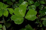 Creeping prostrate herb with slender stems, rooting at the nodes. Leaves digitately 3-foliolate; leaflets obovate, up to 4 cm long and wide, emarginate at the apex, green blotched with white in the centre, hairless above, almost hairless to hairy beneath; margins usually coarsely toothed towards the apex; petiole 3–30 cm long, hairy; stipules ovate, 6–10 mm long. Inflorescence usually 1–2-flowered; peduncle 1.5–25 cm long, ascending; bracts similar to stipules but smaller. Flowers sweetly scented, on pedicels 1.5–6 cm long, reflexed in fruit. Calyx c. 7 mm long, the 2 upper lobes connate almost to their tips, the lateral lobes triangular-lanceolate, the lowest lobe longer than the 2 lateral, hairless to sparsely hairy. Corolla pale blue or rarely white, hairless; standard broadly ovate-elliptic, emarginate, 12–18 mm long; wings c. 13 mm long; keel c. 10 mm long, subangular about the middle of the blade, darker blue at the tip. Pod narrowly oblong, 15–25 mm long, shortly beaked, usually hairless. |