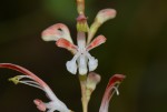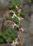 Perennial herb, 20-45 cm high, growing from a corm 15-20 mm in diameter. Foliage leaves 3-4, lanceolate to nearly linear, 4-14 mm wide, plicate to weakly folded, lowermost basal and reaching up to the base of the inflorescence. Flowering stem usually 3-4-branched, rarely simple. Main flowering spike 20-flowered or more. Flowers cream to greenish, reddish or purple. Tepals more or less linear-spathulate; upper tepal longest, 10-12 mm long. Filaments c. 10 mm long; style reaching to about the middle of the anthers. Capsule 3-4 mm long. |
